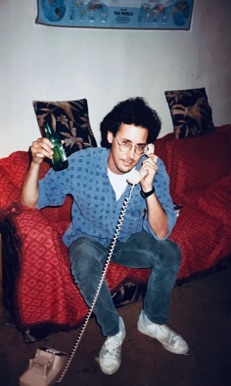 Me with rare Heinekin using a "telephone" - pretty sure this was from the East Harlem apartment.
